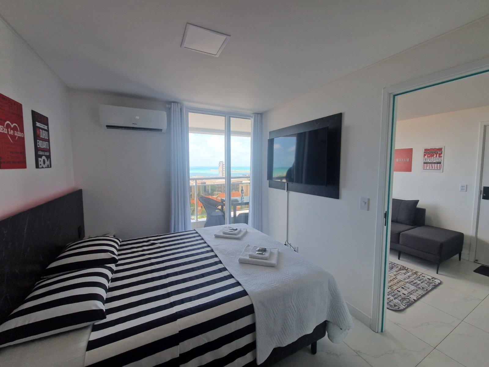 Suíte ampla com ar condicionado, Tv e vista mar