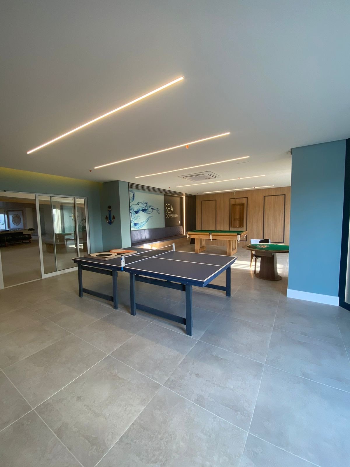 Sala especial para jogos de carteado, sinuca, tenis de mesa